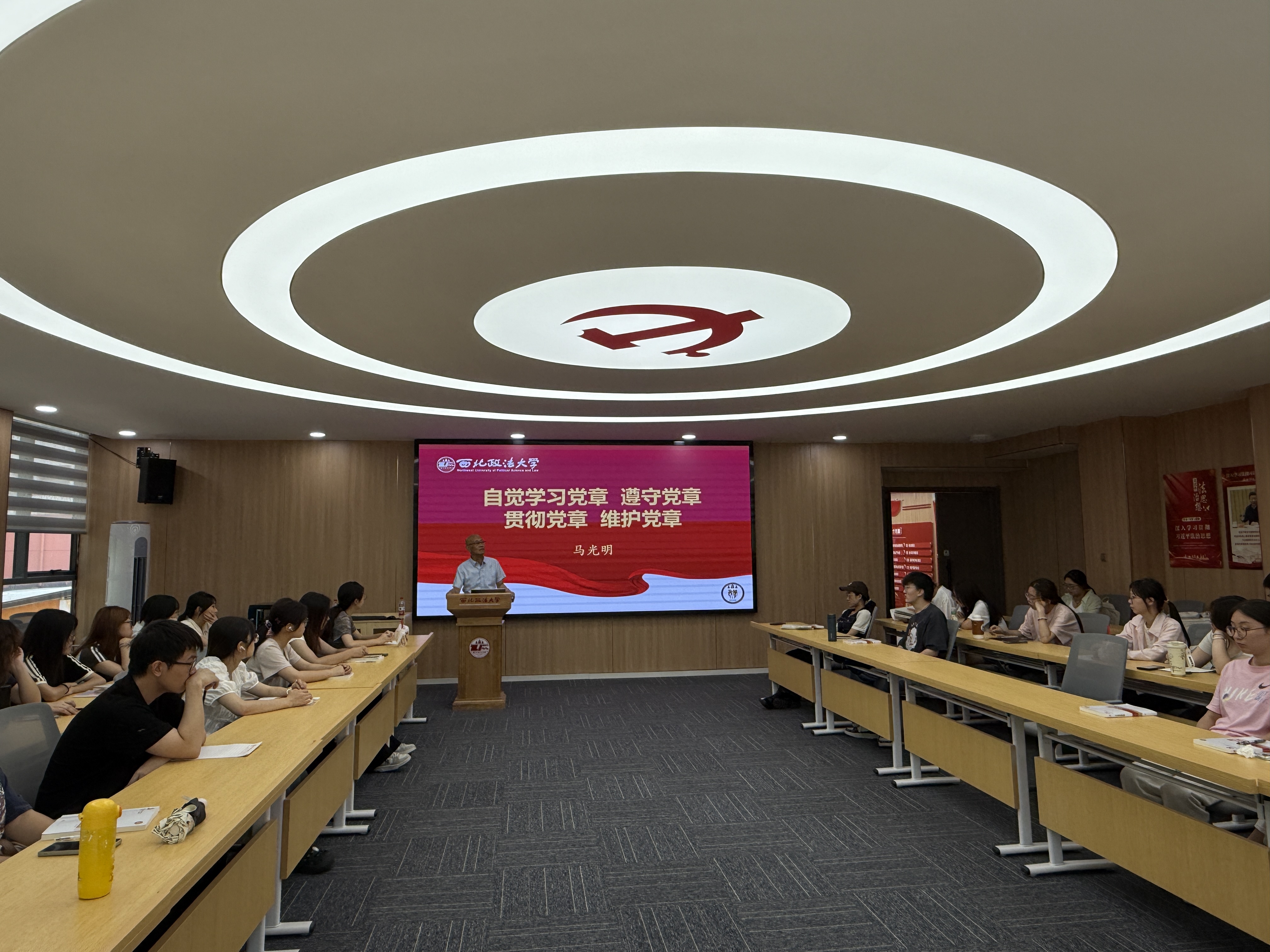 马光明首先强调了全面学习、深入领会党章的重要性。他指出,党章是党的根本行为规范,集中体现了党的指导思想、核心主张和制度机制,是每一位党员必须严格遵守的行动指南。他要求入党积极分子将党章学习作为必修课,深刻领悟其内涵,明确党的要求与自身使命。随后,马光明以历史脉络为主线,详细介绍了党章在不同时期的修订与发展,并系统讲解了党章的内容和结构,帮助学员们加深理解。