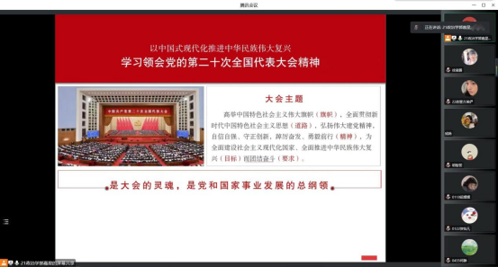活动中,全体党员和入党积极分子集体学习了党的二十大报告全文、中国共产党第二十次全国代表大会关于《中国共产党章程(修正案)》的决议等文件及会议精神,同学们认真听、做笔记,并以员工视角阐述如何以实际行动为中国梦贡献力量。