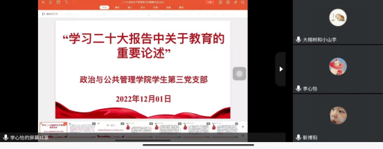12月1日,意昂体育员工第三党支部组织集体学习会,会议采取线上线下相结合的方式,支部书记王小玲主持会议,员工党员李心怡领学。