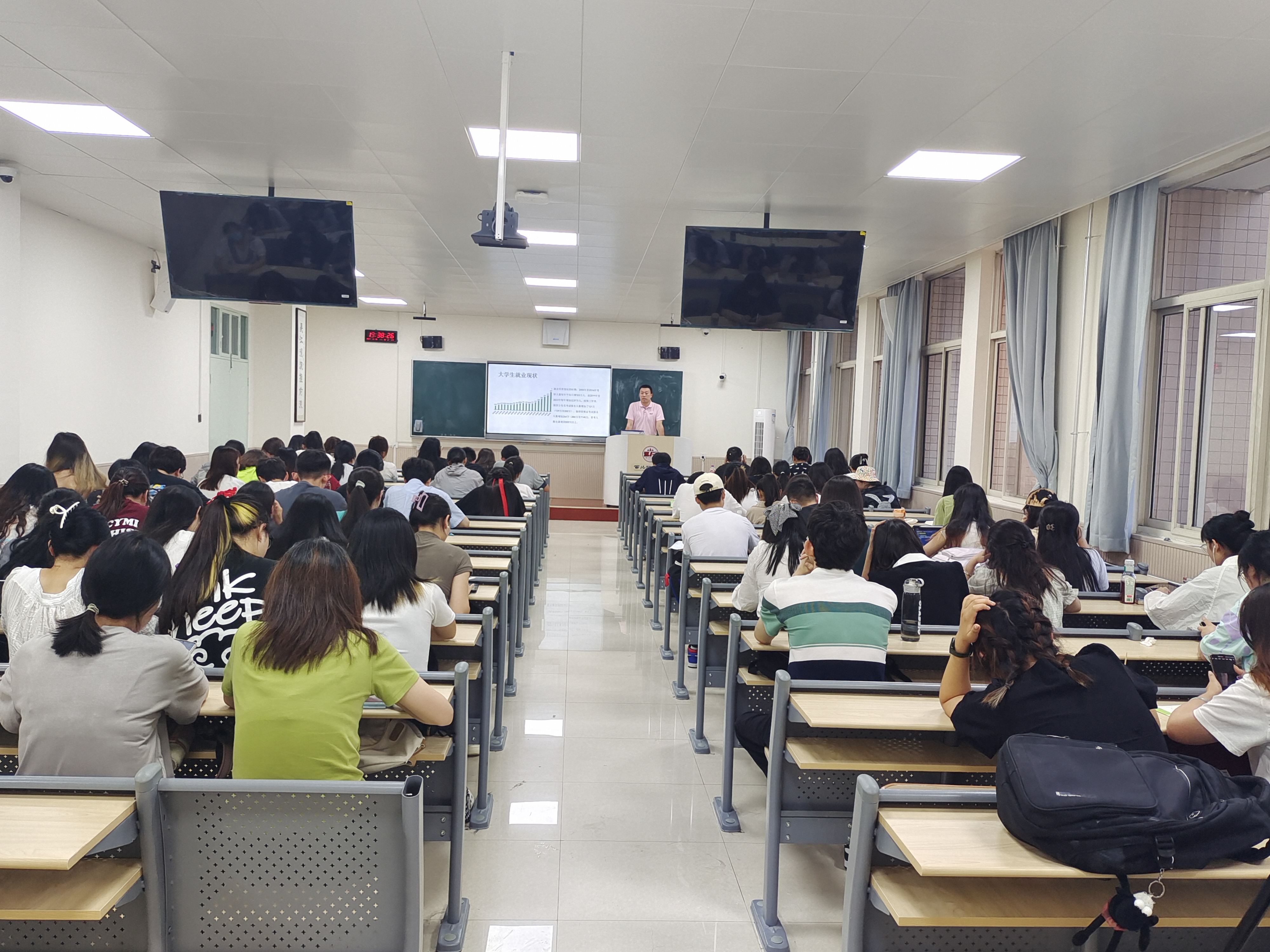 赫钎宏运用风趣幽默的语言生动地描述相关就业数据,并对当前可能的几种就业路径进行了详细比较。同学们对赫老师诚恳的建议表示赞同,深深地被老师的风趣幽默和旁征博引所吸引,纷纷表示要抓紧明确职业方向,通过不断提高自身竞争力来提高就业质量。