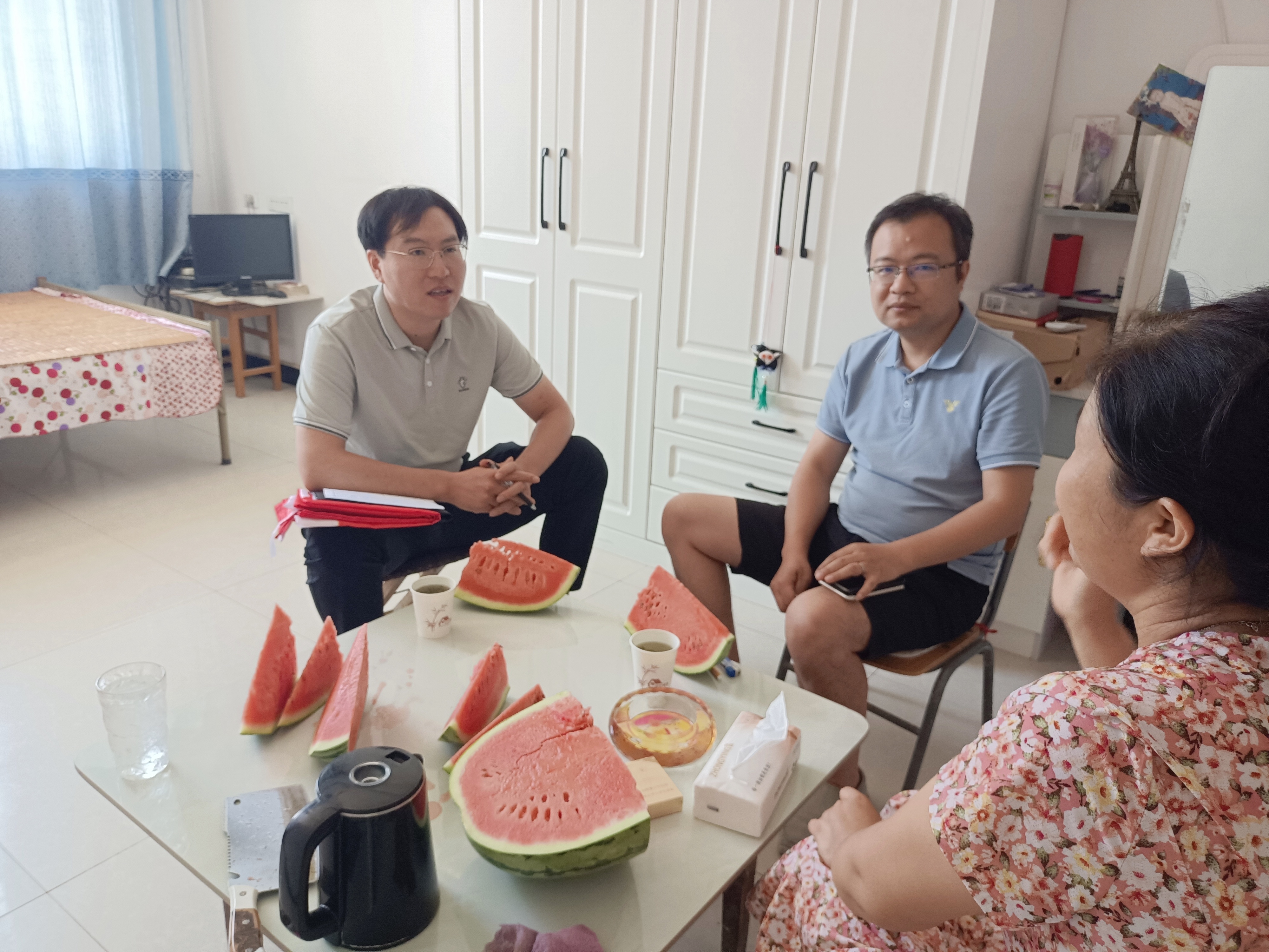 走访活动进行期间,潘键副书记和梁传龙老师为家庭经济困难员工送去暖心的慰问品,并与受访员工和家长进行深入交谈,详细询问家庭年收入、家庭基本成员构成、家庭现状等基本情况,了解员工暑期在家生活学习状况、专业实习情况、思想动态等。向员工家长真实反馈员工在校的学习状况及各项表现,并向家长全面宣讲国家和公司的各项资助政策,告知家长国家及公司各类“奖助贷减补”政策的具体要求和资助金额。