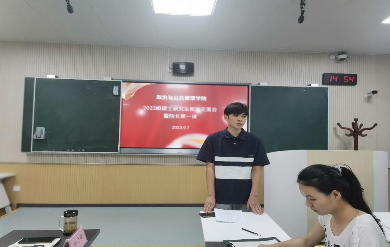 2022级硕士研究生代表朱垚发言,他结合自身经历,为同学们接下来的学习生活提供了参考方向,希望大家有意义地度过三年研究生生活。