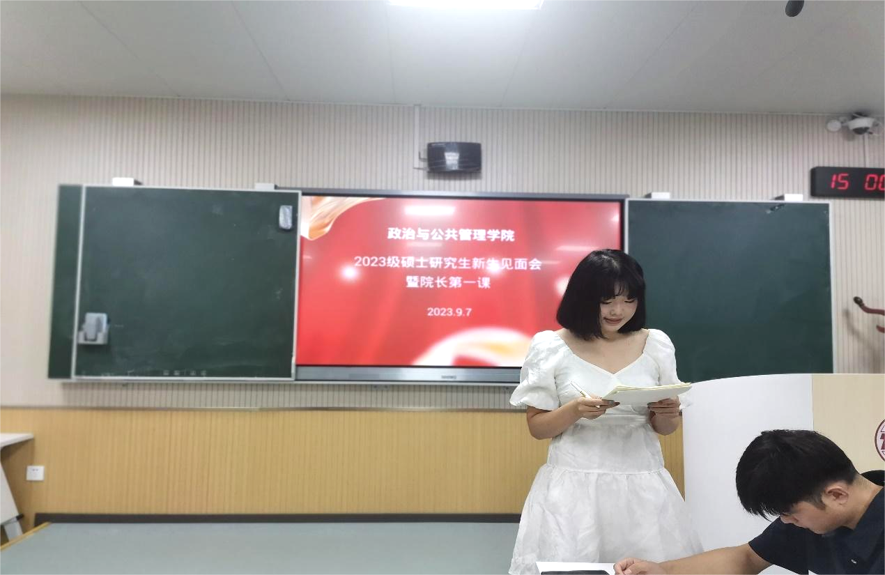 2023级硕士研究生新生代表卢纹璇表达了对于未来学习生活踔厉奋发、笃行不怠的决心;学有所获、学有所成的信心。她号召同学们携手前进,走向人生新起点。