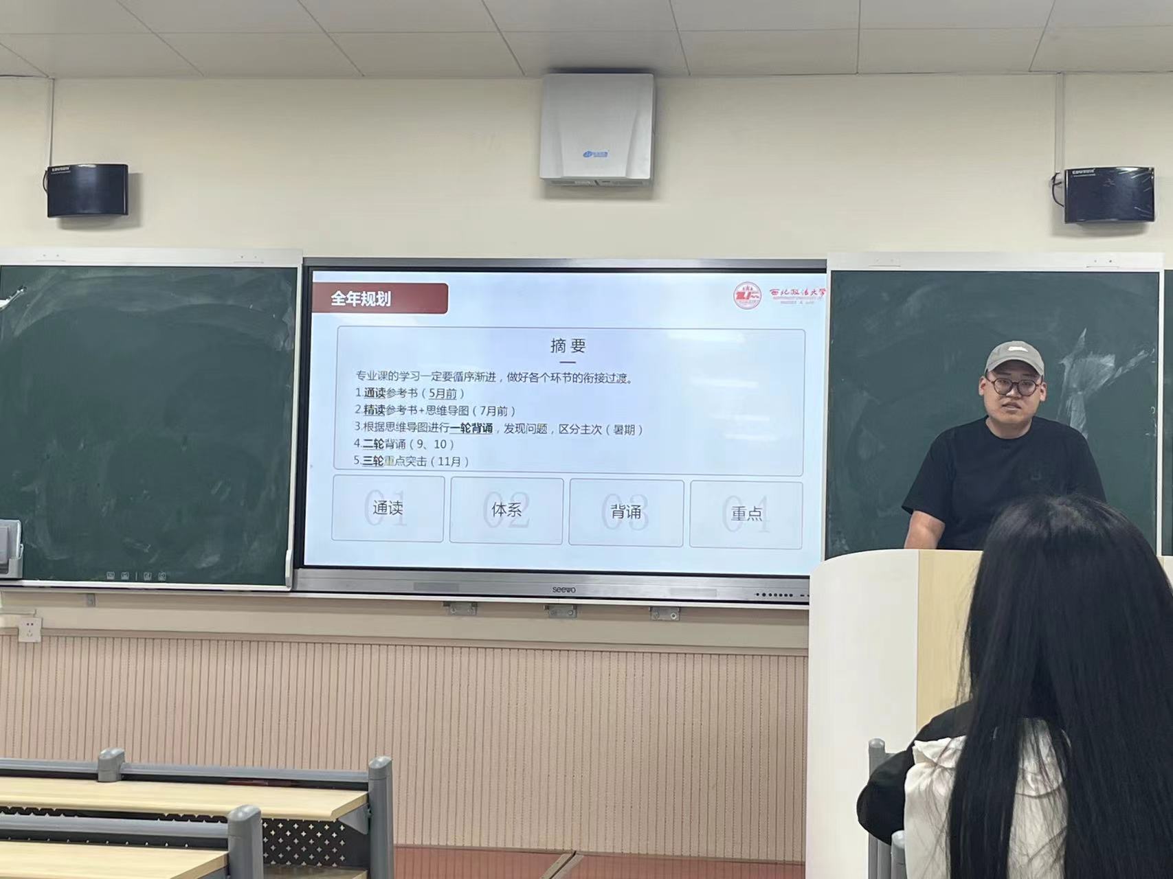 经验分享环节,成功考取硕士研究生的四名2024届员工结合个人经历分别作了经验分享。蔡贤从考研理由、院校选择、信息收集和学习方法等进行全方面的讲解和指导;王昂向大家详细介绍了自己的考研具体规划和对每个科目细致的复习方法,鼓励同学们做好总体规划和建立自己的知识体系;昝清源则针对政治和跨考的专业课分享自己的成功经验,并提出了宝贵的学习建议;陈吴晓表示要相信公司,相信老师,也相信自己,不断地努力学习,不轻言放弃,努力就会有收获。